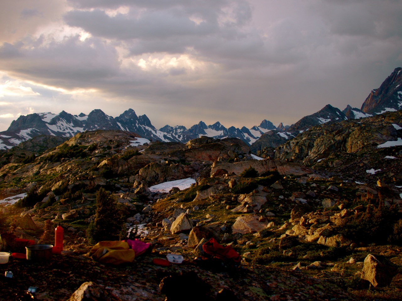 These images were shot during our climbing camp in late-July in the Wind River Mountains. We had just moved into the cirque to the west of Gannett Peak and were welcomed by very unsettled weather. Every day we would head up to the rock climbing area early, learning skills like setting pro, rappelling and, of course, sending the gnar. In the afternoon the storms would invariably hit, sending us scattering back to camp. And every spectacular evening I would grab my camera, as clouds and rain billowed across the valley to our north, , and the sun raged to the west, hoping to capture a bit of the spectacle. Here are a few images from this magical place.