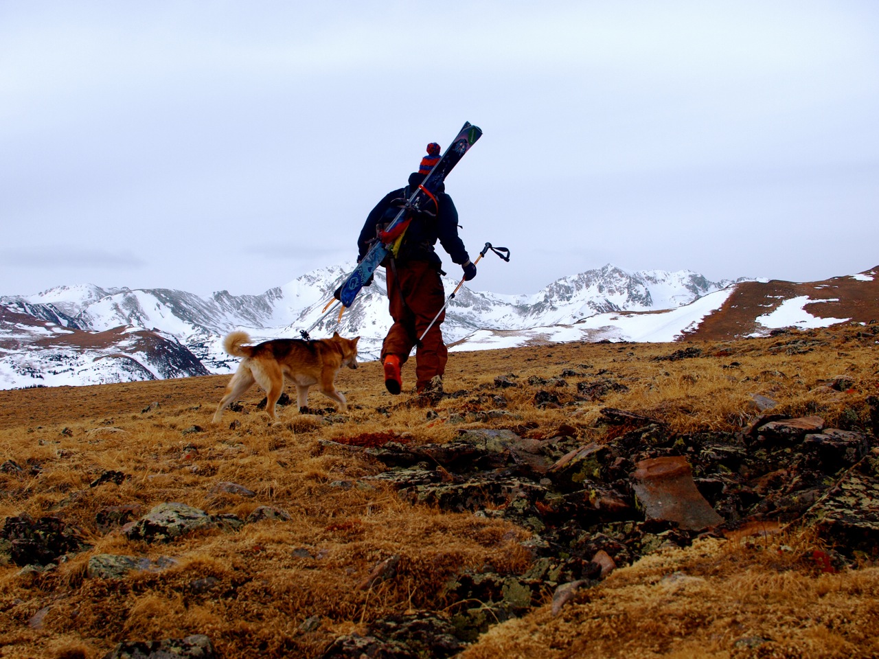 It's good to get up early and wander the hills. Even though the snow is marginal right now, there are still things to do. Like basically, get in shape for May and June, which in my book is the real ski season anyhow. Here in Colorado, January is more of a dip and dab month, poking in trees and maybe doing a tour. I think I might do a winter ascent up South Arapaho on this route next week if the weather holds. Toss in some running shoes and blaze up the long stretches of tundra. Anyway, here are a few images – it was Stella's first day above timberline!