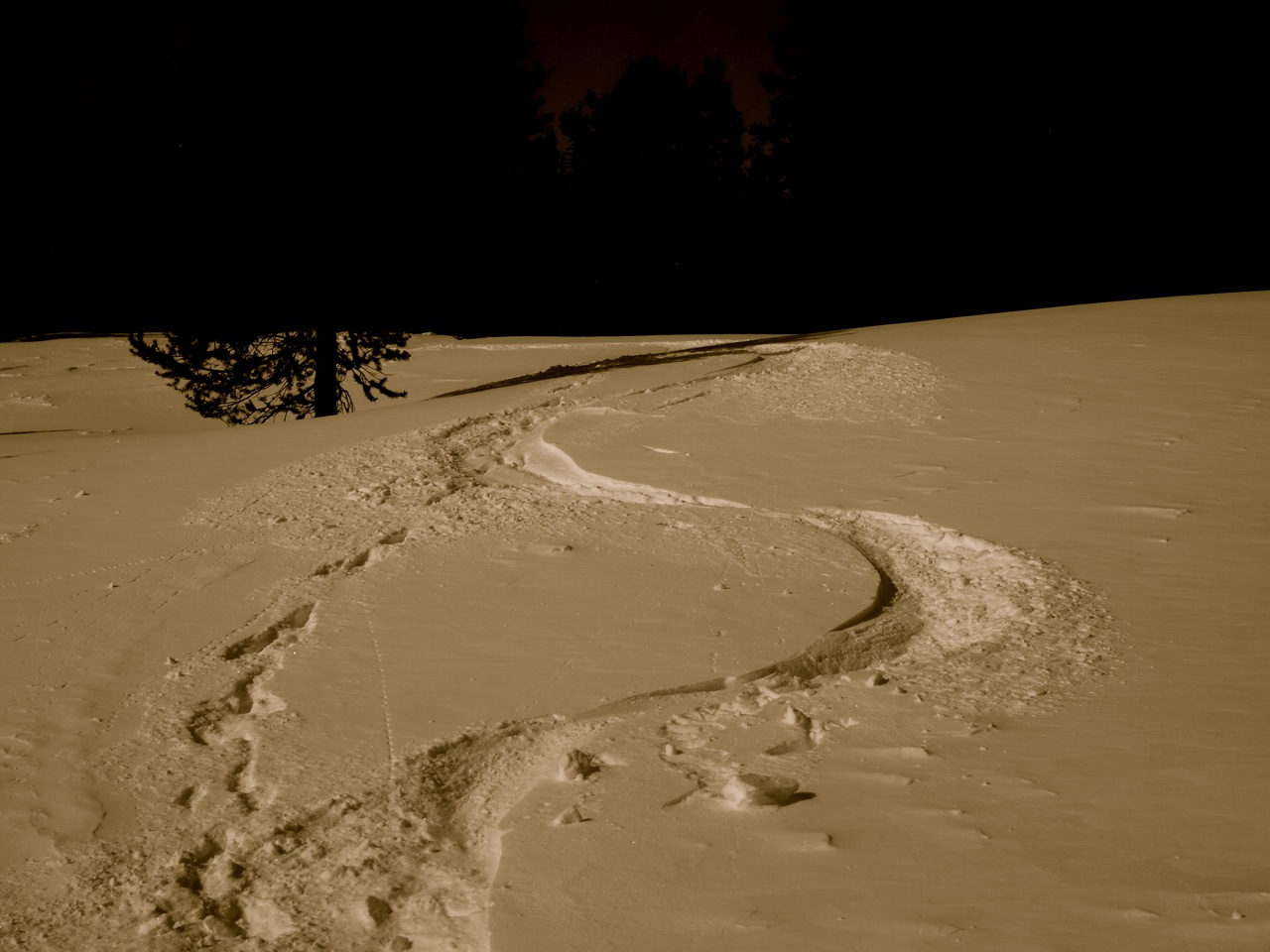 …to make a good ski day up here. A little wind, and suddenly an inch skis like five. The wind returns, and with it, good skiing in the trees.