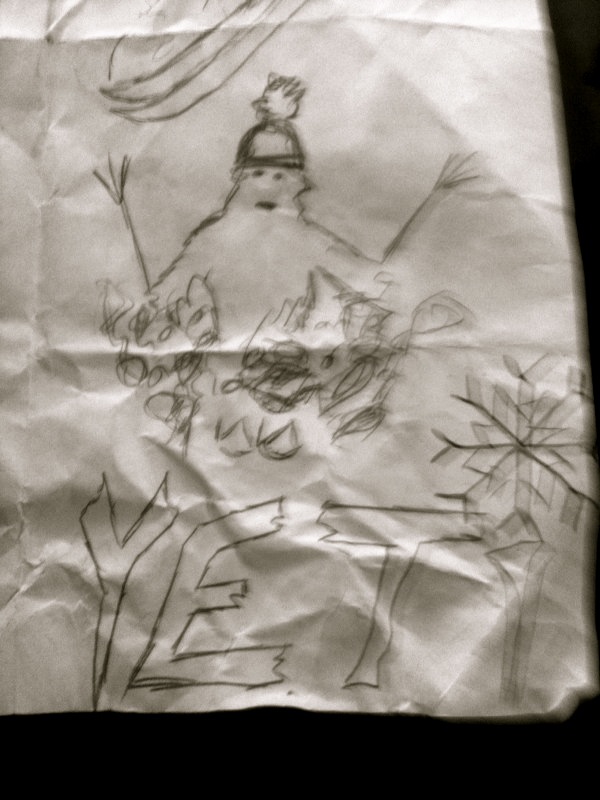 Taking advantage of the sick days to get a little business idea off the ground. Yeti Handknit Hats. I've been knitting ski caps with big pom-poms for a few years, and have gotten a lot of positive feedback on them. I used to make them for kids on the ski team and NOLS students and instructors. Now, we're going big-time! Well, not really, but Elaine did draw up a sketch for a sticker logo and I'm cranking out some lids since there is nothing else to do. I'll have a batch for sale at Neptune later this month.