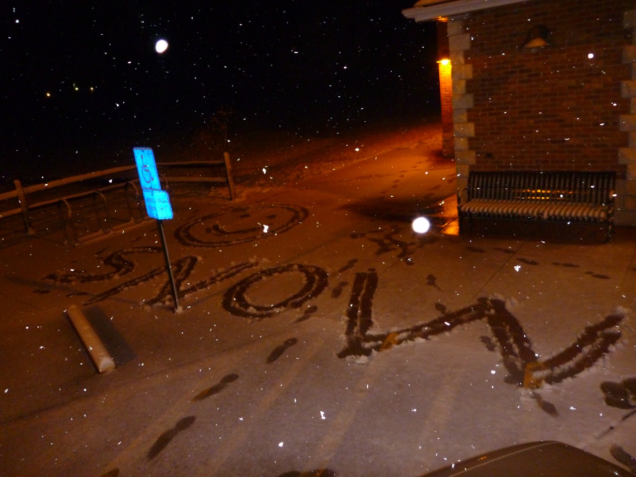Came home tonight, and it's dumping out! A little art in front of the post office. Tomorrow, up to the divide to enjoy all the new powder. It's just what we do.