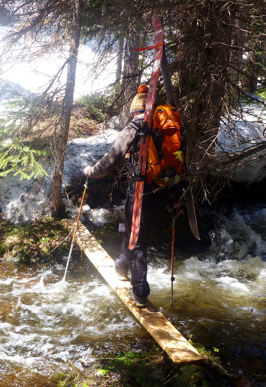 The last snow bridge crossing the creek melted out yesterday. Fortunately the wood nymphs constructed a little plank that keeps the fun going!