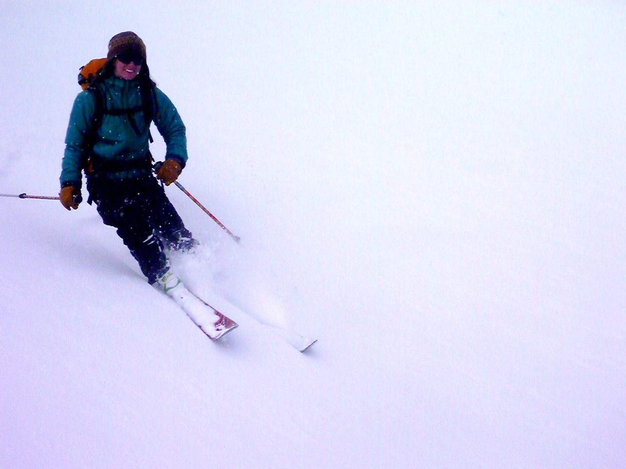 Elaine enjoys the powder as her braids go flying.