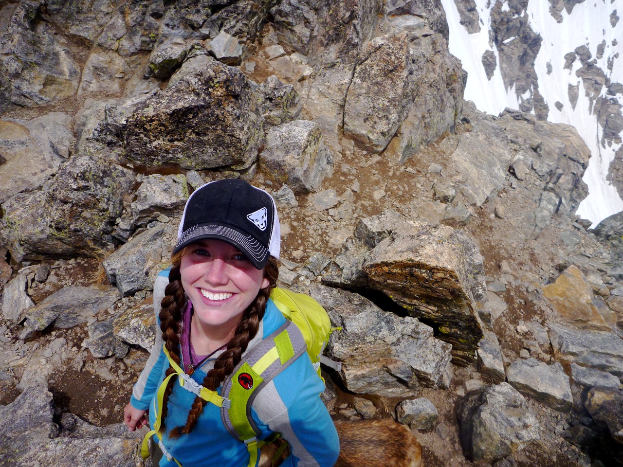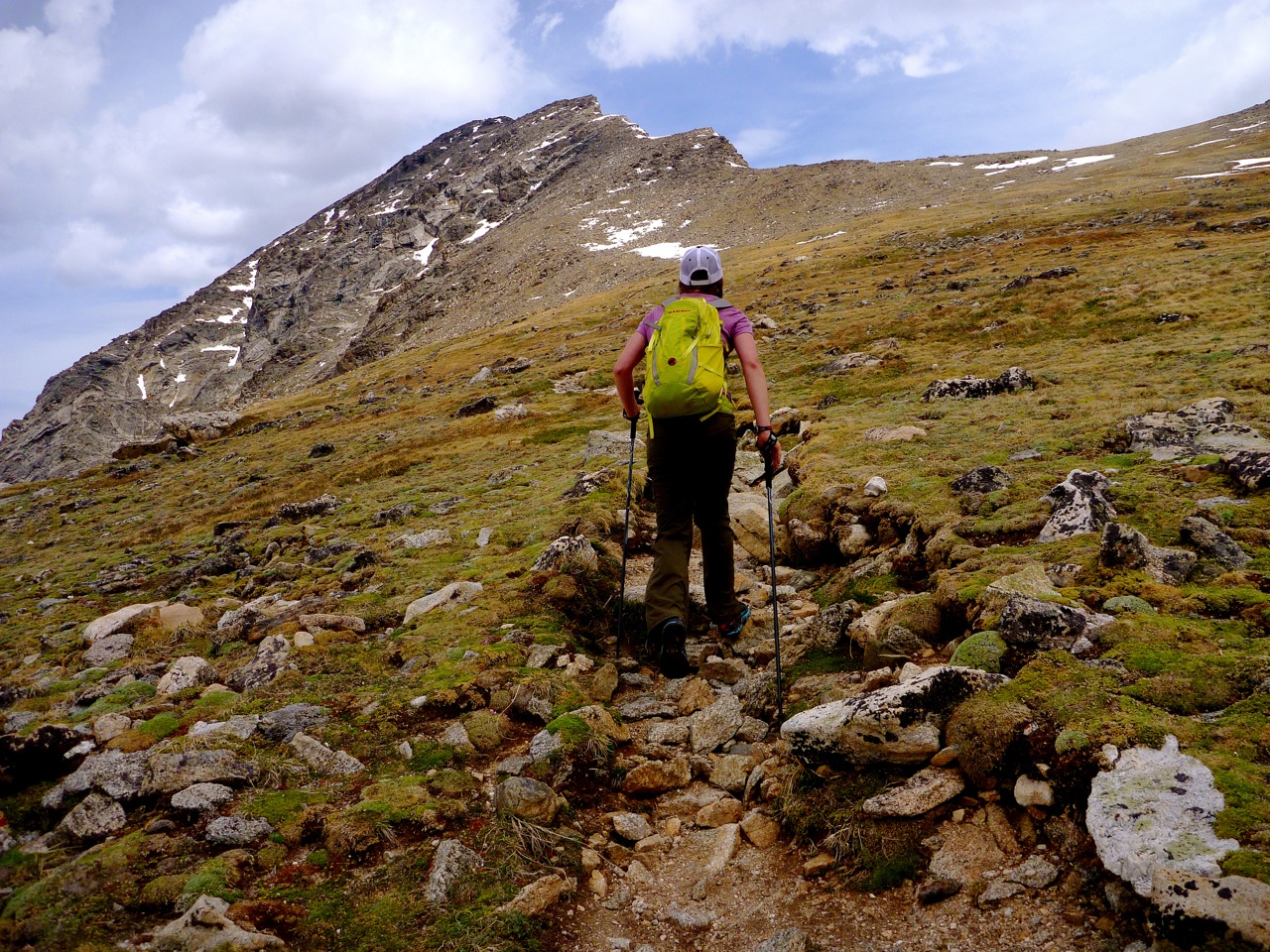 Elaine heading up the final part of the trail to the summit pyramid.