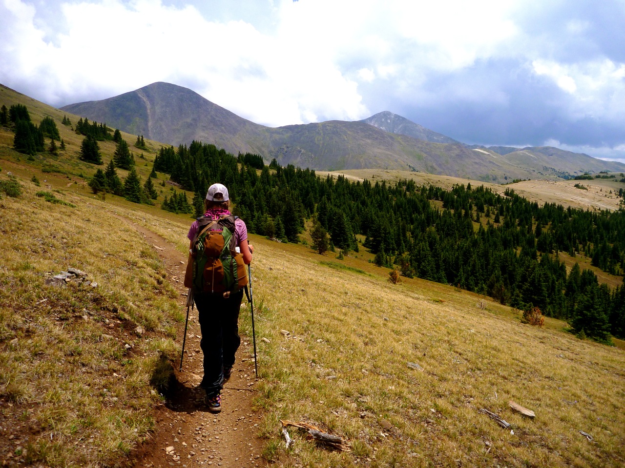 We hiked onward. We were coming to decision time. Clouds were building up rapidly just as we reached timberline. The choice was to stay in the woods and wait it out or go for it and hope for the best on a long, exposed traverse above timberline. There were still patches of blue in the sky and we hadn't heard thunder yet, so we opted for the latter. Our goal was to at least try and make it to the Green Creek Shelter, two miles away.