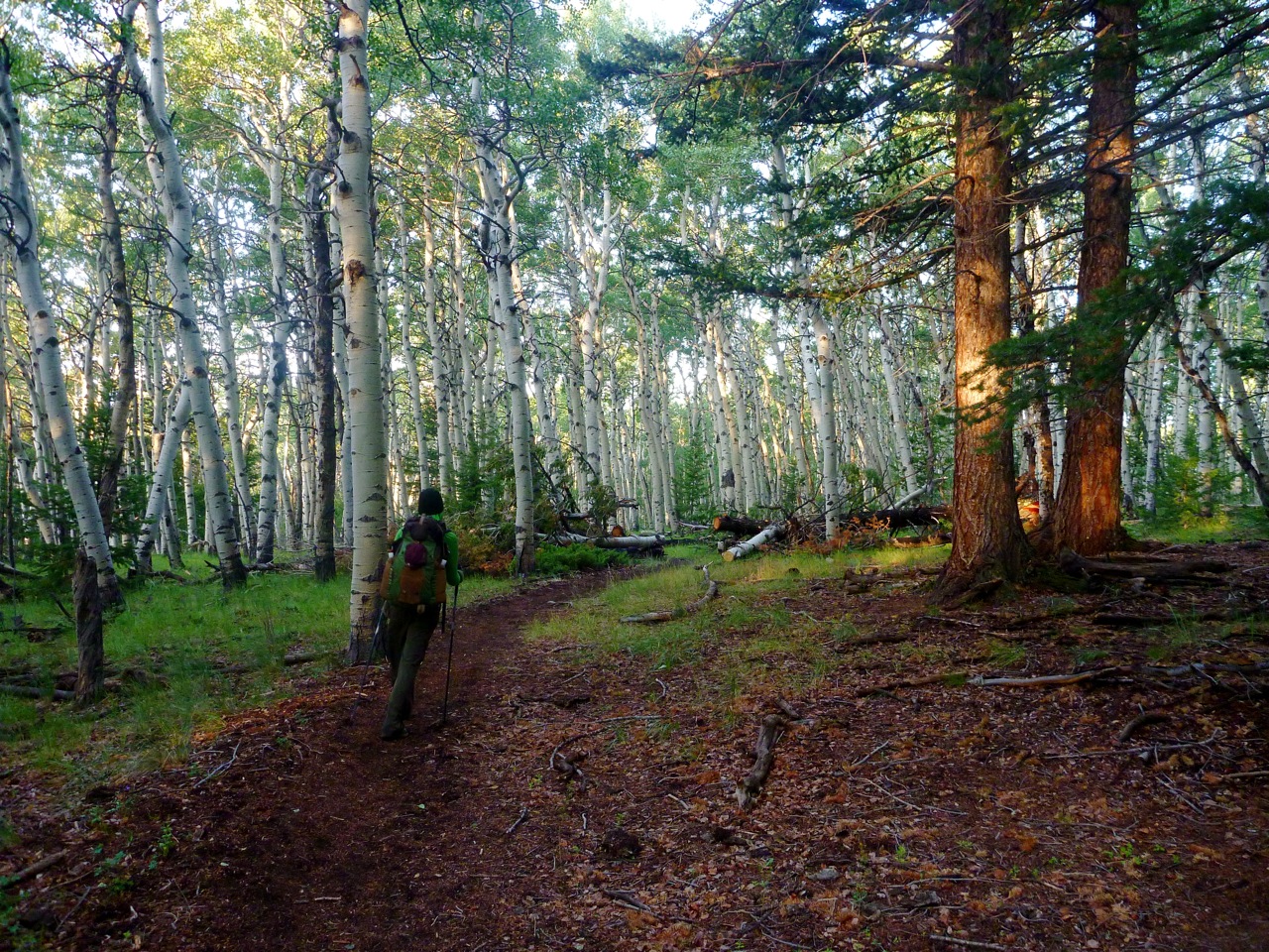 We walked in silence for quite some time, but were soon brought back into a cheerful mood by something called the Fooses Creek Trail, which joined the Colorado Trail for this section up to the divide. For some reason my 2003 bike crew skipped this section, and that was a serious mistake, as this was some of the nicest trail we've encountered yet. It was incredibly lush – there were ferns on the ground, which reminded me of the forest where I grew up in Vermont. We lived in a house under a huge grove of lodge pole pines that whispered when the wind blew. Beneath the towering trees was a bed of thick, beautiful ferns where I spent a lot of time exploring. This section of trail reminded me of home.