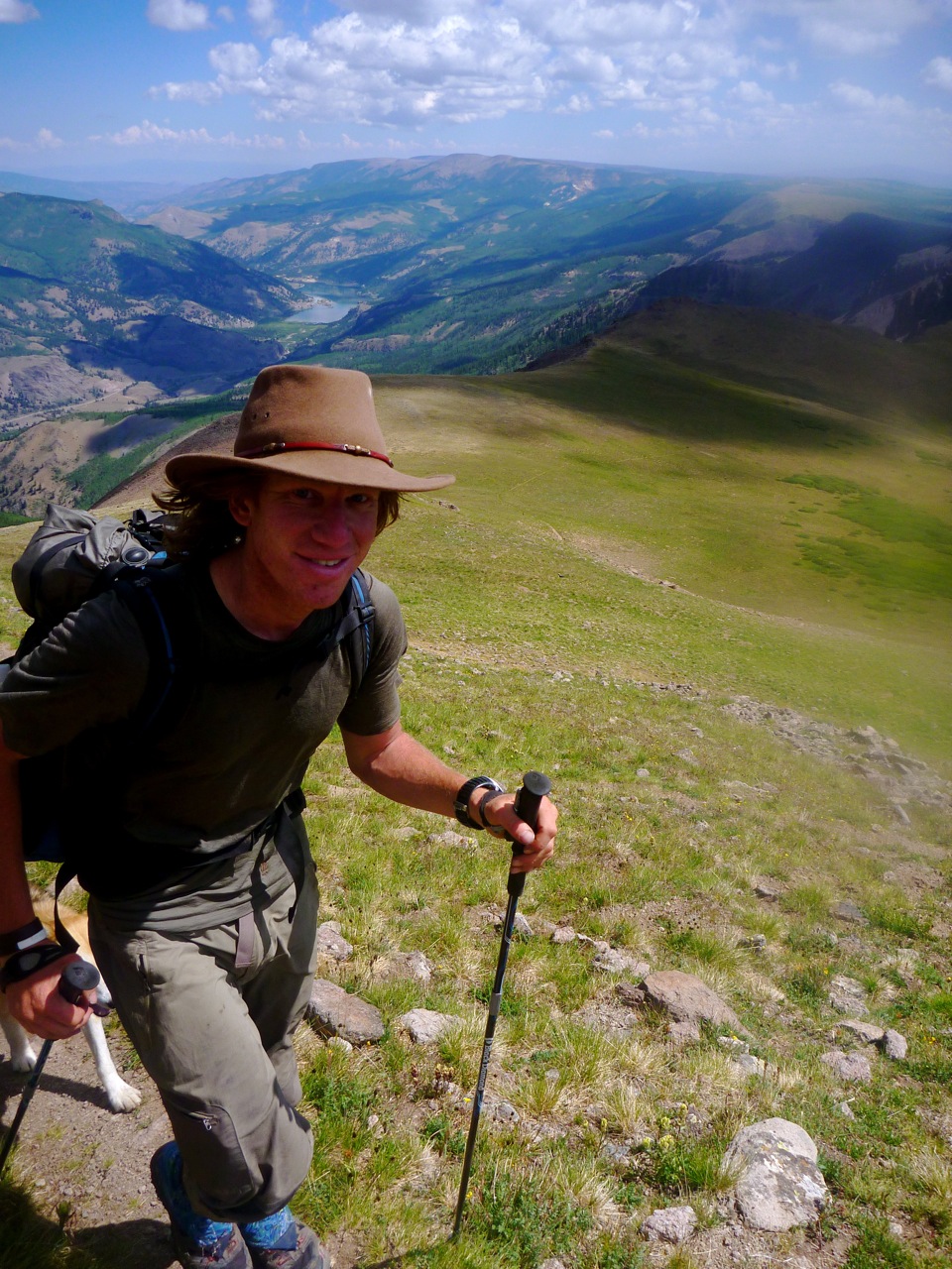 Elaine pushed a brutal pace to the top, alternating between exceptionally fast hiking and running, always fun on a steep loose hill at 12,500 feet above sea level with a 25 pound pack. It took everything I had to keep up with the pace. She later told me the adrenaline of potentially getting struck by lightning kicked in and any pain of moving so fast evaporated. If we'd skied the Elk Mountain Traverse at that pace we certainly would have been a lot quicker than we were! Like I said, she's madly talented out here in the hills, more than any girl I've ever hiked with, more than just about every guy I've hiked with too.