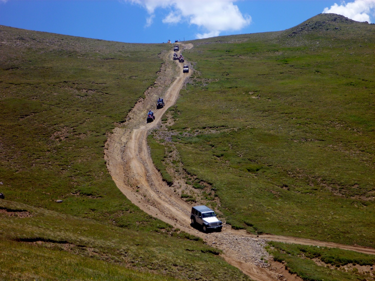 And then the contrast. As we headed down to Carson Saddle we were greeted by throngs of ATV riders. While the moto riders on Marshall Pass seemed like passionate outdoor users who possessed real skill, the ATV riders looked silly, like tourists who don't belong out here. They laughed at our haggard look, and it's just as well. They reminded me of the characters in "Call of the Wild," the southlanders, who tried to take a dog team to the north and get rich but instead just fell into a frozen lake. Riding ATV's takes little skill. The first and only time I rode one, helping to pull flagging on a mountain bike course up in the Yukon, I was able to go 50 mph on rough trails with zero effort. They're a cheap thrill, but they have consequence. The land is badly scarred in this part of the San Juans by the use of ATV's.