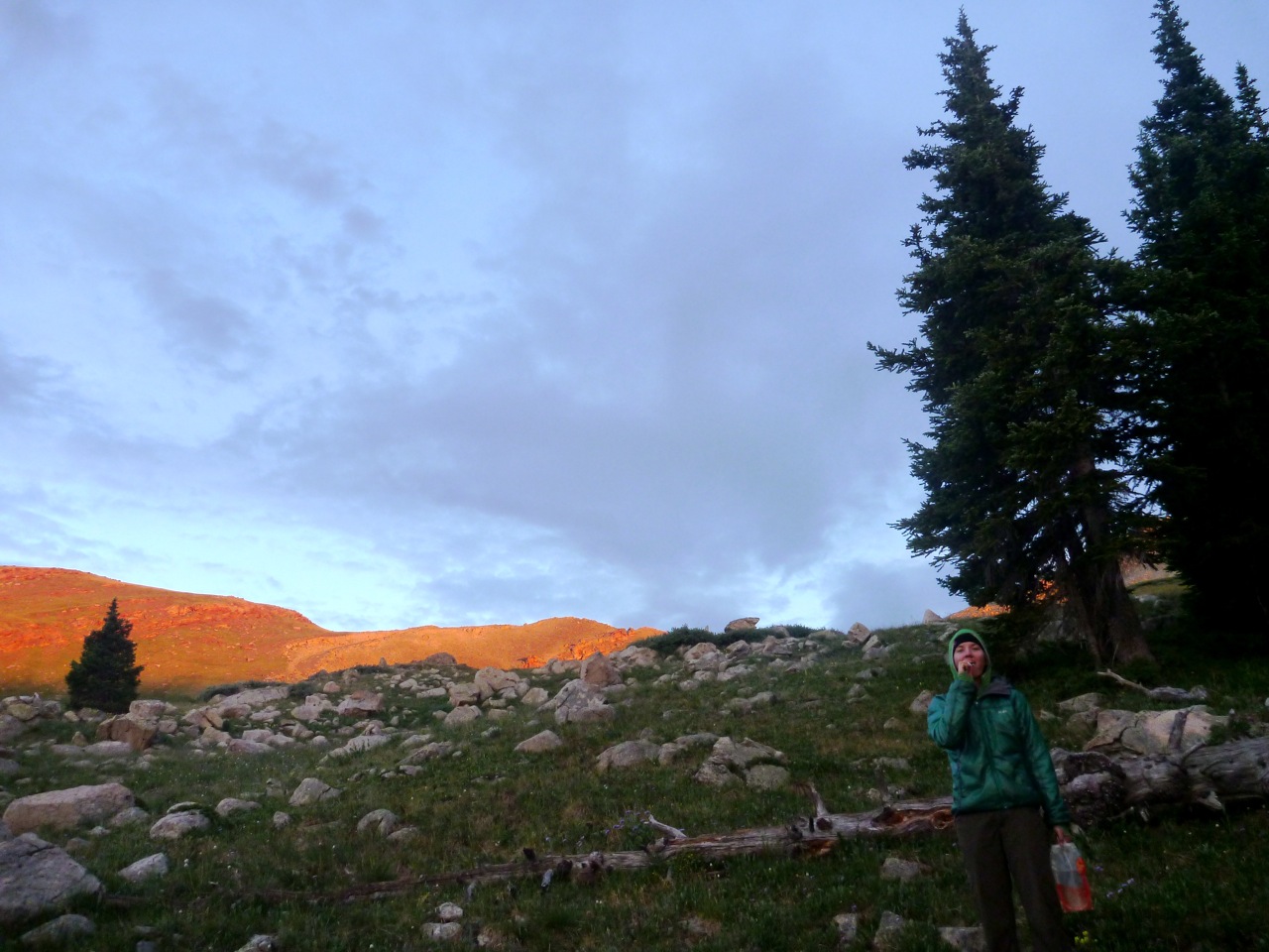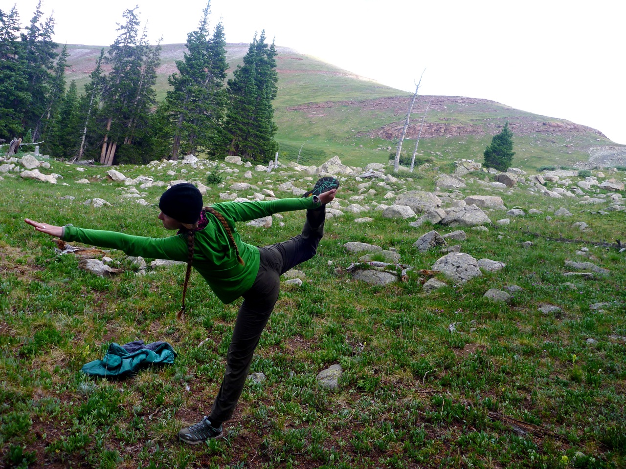 We turned around and set up a camp right at timberline. It was a good evening – we did some yoga, ate some good food and listened to the tundra birds. We tucked into our cozy sleeping bags. I think we may have crossed some sort of mental threshold today. Temptation to quit was there, but we didn't. The mental will power is there in droves, as is the physical fitness. Let's hope Elaine's knee follows suit.