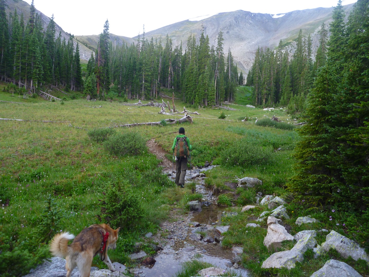 We finally circumnavigated all of Copper and entered a beautiful gully that paralled a mountain creek that eventually rose up to Searle Pass. We hiked quietly for some time. I think we were both kind of figuring out if we really still wanted this. A lot had been tossed our way and quite honestly Copper Mountain would have made a convenient quitting stop. And yet, we never stopped.