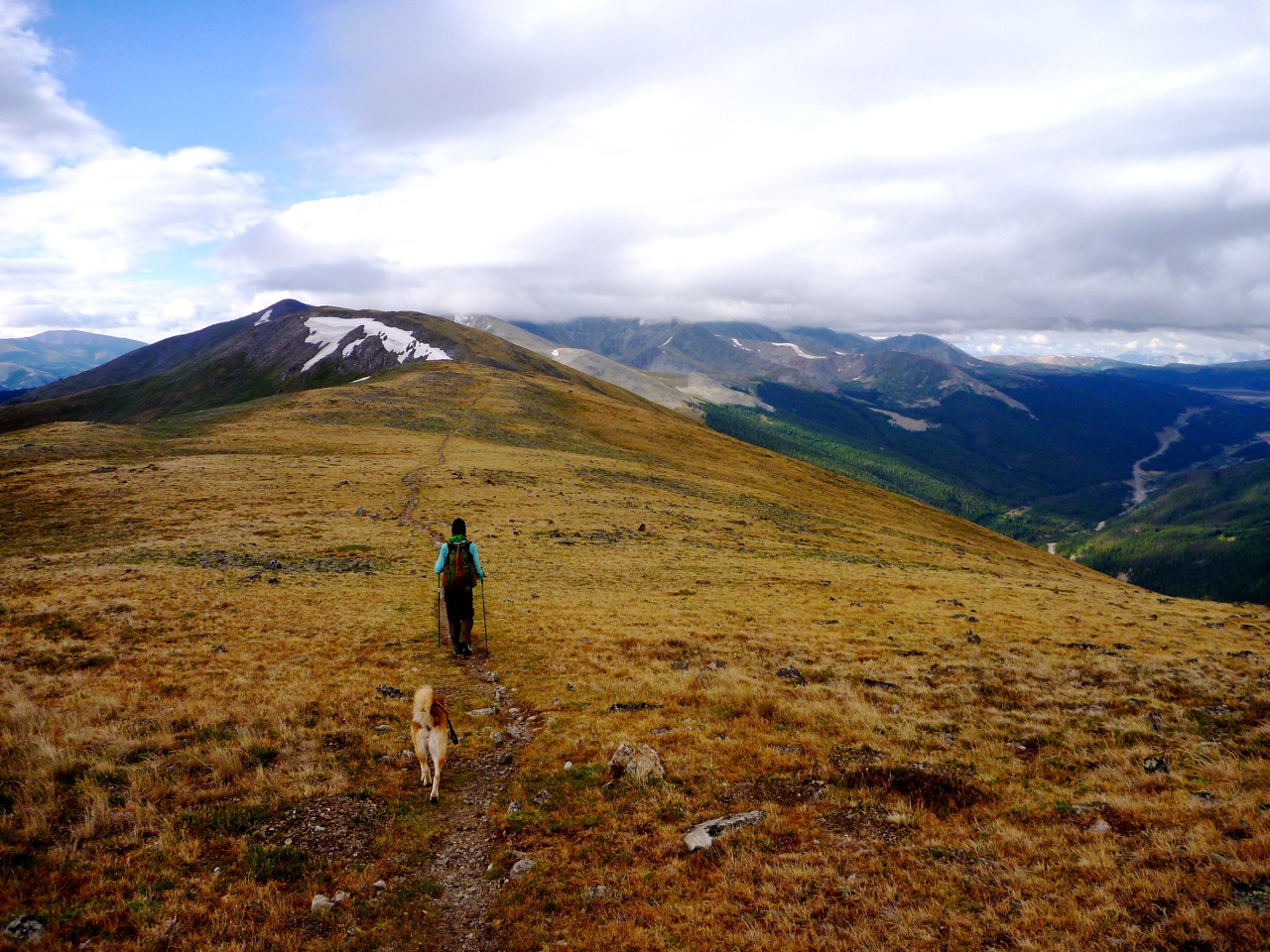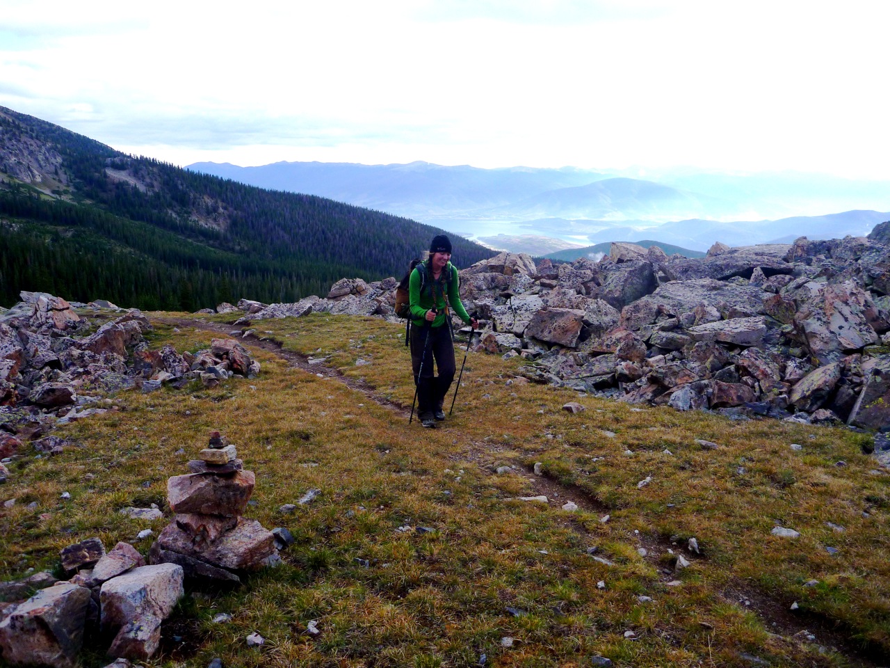 Started this day of hiking with a bang – a wall straight up to the top of the 10-Mile Range. It's an amazing trail that tops out above timberline on a high alpine ridge. A horrid place to be in a lightning storm, but at 6 am it's delectable. Heading on the ridge north, Summit County drops away to the left. It was possible to look back and see our entire route from Georgia Pass, Lost Creek and beyond. I felt a real sense of pride having walked this far.