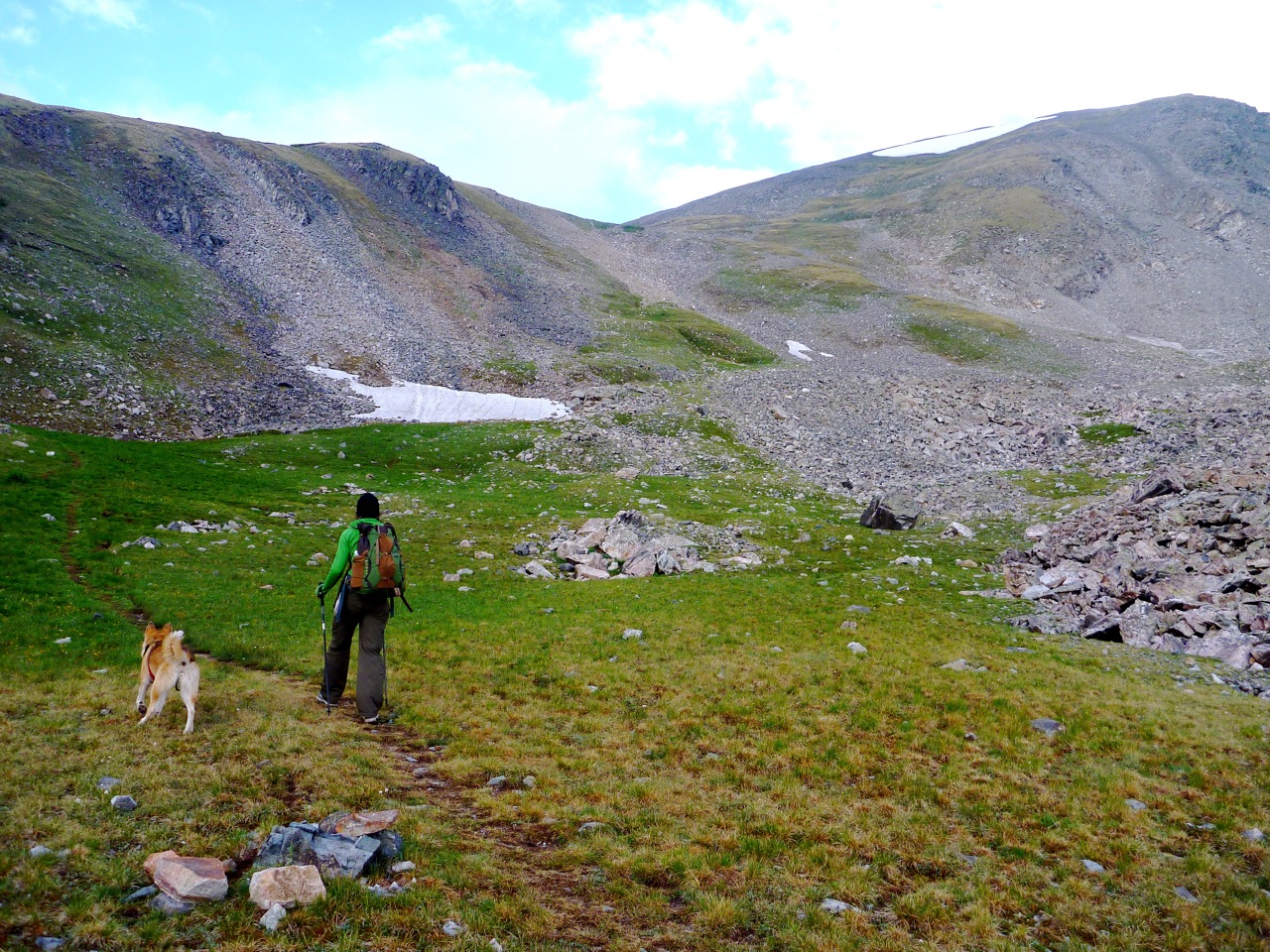 To the west sprawled Copper Mountain and the snaking I-70, making its way up Vail Pass. On the way down we found a little snow patch. Stella showed little interest. A trail runner passed us going the other way. That's a hell of a great way to start the morning off in my book – a real life Nike commercial.
