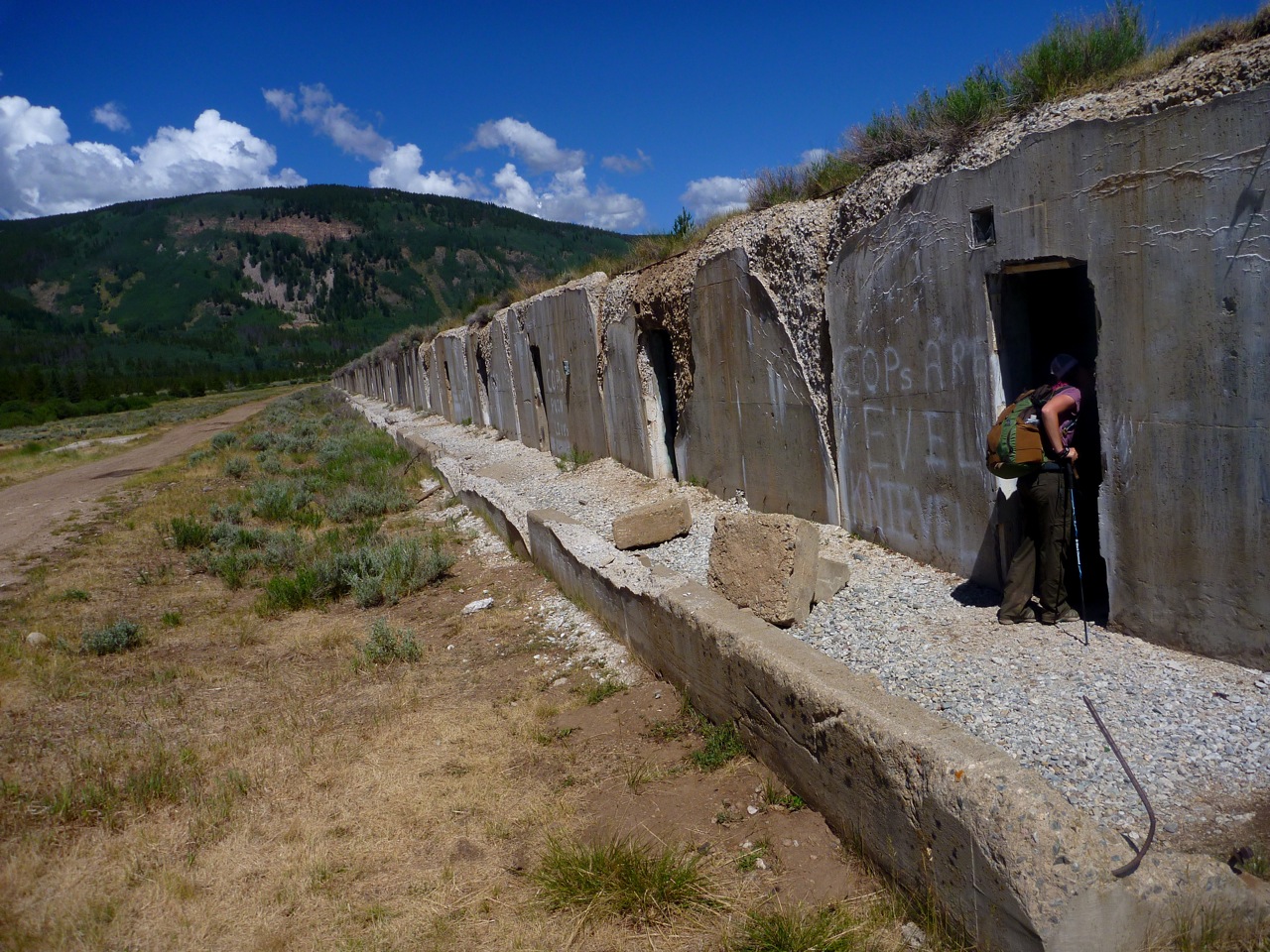 The trail dropped precipitously to Camp Hale, a massive flat valley ringed by huge mountains. It meandered to a nice waterfall where we snacked. We spent a good deal of time discussing U.S. war policies, World War II motivations, Camp Hale and such. The bunkers down there of course elicit such discussion. I'm deeply impressed by the 10th Mountain boys, and while I'm sure there is some truth to the opinion that the motives of World War II are idealized and the lack of media back in those days has allowed a single message and opinion to be delived, especially in comparision to say Vietnam or the Iraq War. Despite this, I remain impressed. Going straight up a mountainside at night, hanging off ropes on some remote cliff in Italy, while getting shot at requires a fortitude that I can only dream of. I like to think if I were alive then I would have signed up for the outfit. I'd like to think that if I were alive back then I would have had the courage to put myself on the sharp end of that stick.