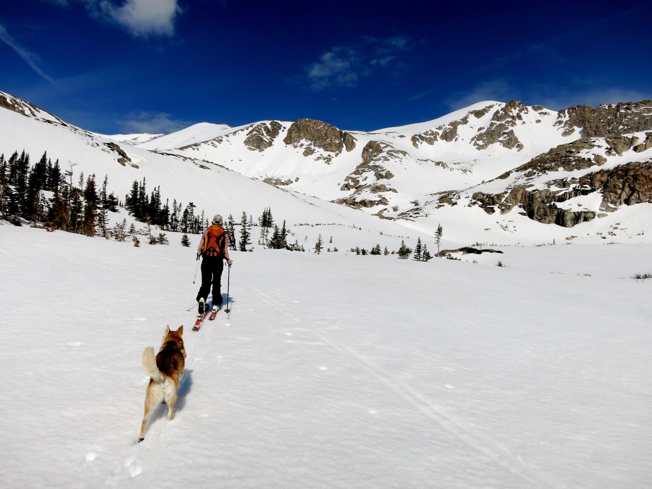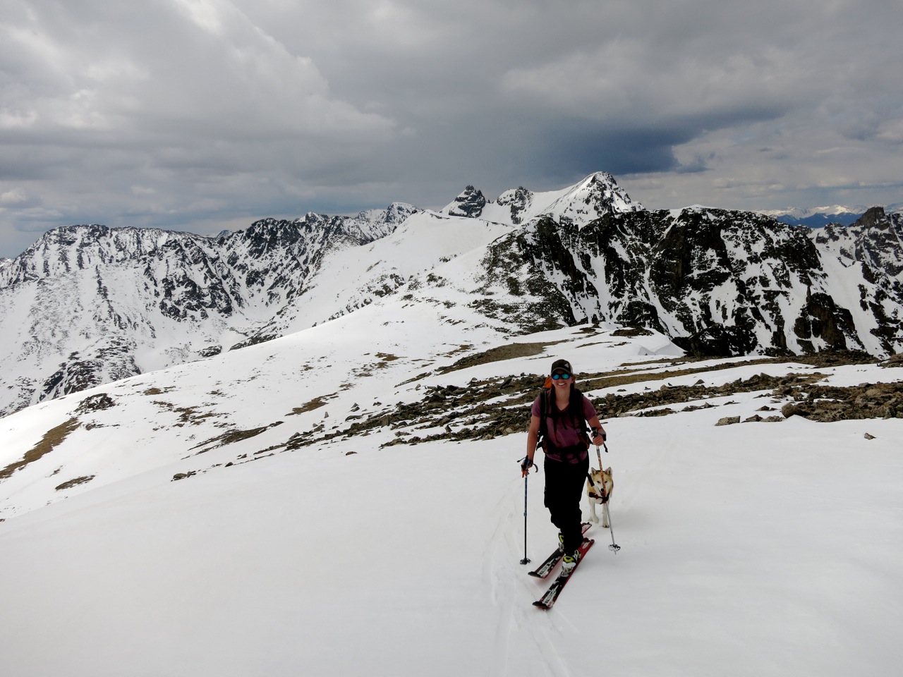 Boulder may be in the grips of 80° heat bombs, but in the mountains, winter is still maintaining it’s white grip. As we skin further in, we gaze about, mandibles about hitting the glistening white snow – there is much more snow up here than we originally thought. In fact, Navajo looks like you could ski it – if you had a death wish, I suppose.