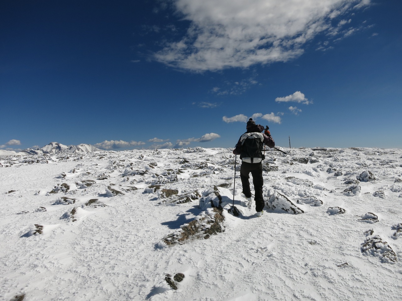 One thing about going on these trips, is you can’t help but start planning others right then and there. We talked of a three or four day trip into the St. Vrain Glacial Valley. One day to ski in (it’s quite the approach!), one day to ski Elk Tooth, one day to ski Ogalalla, and then ski out. That will be slightly later. There was also Sawtooth beaconing. As a skier, it is not possible to drive the Peak to Peak Highway without fantasizing about Sawtooth. You don’t actually see the ski route from the highway, but it still ignites the imagination. These sights are much needed on these climbs. Red Deer is not too steep, but still a huff of 2,000 ft, and the majestic view is a much needed distraction.