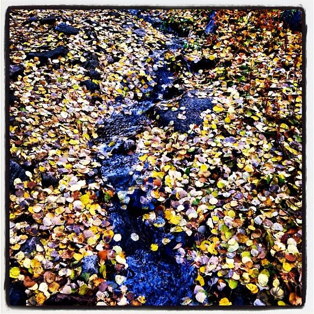 And with a blink, fall's peak has passed at 8,800 feet above sea level. Most of the leaves are on the ground, losing life and color. We now enter the silent and stark season where the mountains are vacated and we wait till the snow falls deep. It's the frost season, the time of low light and long angles. This bed of leaves and a tiny creek give us one of the last images to hold us over till the next autumn comes.