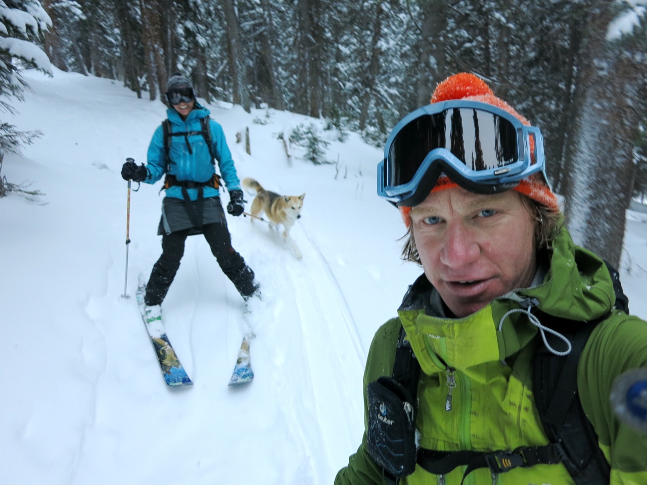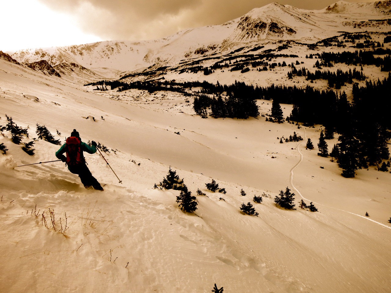 …and the very bottom ones near treeline were thigh deep. This is what happens when all the snow from the summits peak blows down the mountain. We skied mellow terrain with the funkiness in the snowpack, but managed to sneak in a few solid powder turns.