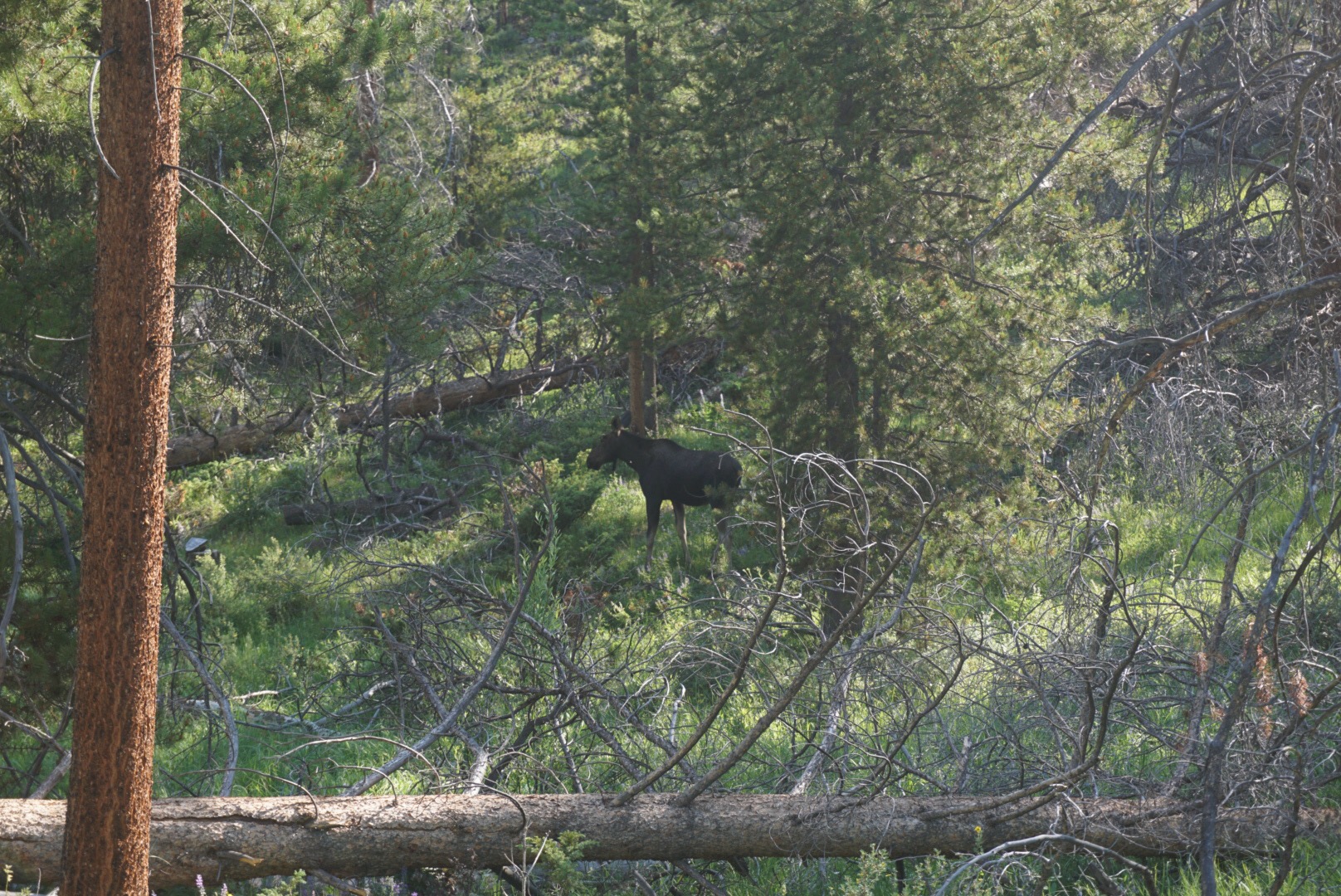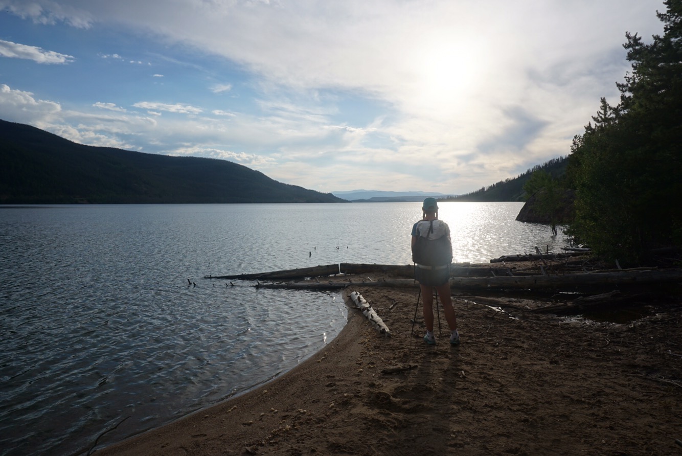 This morning the hike continued looping around the reservoir. We moved in an out of the Indian Peaks and Rocky Mountain National Park, all the while circling the eastern side of Lake Granby for 12 miles. Deer and moose abound. A muggy day has turned into cool thunderstorms. We picked up our re-ration and as we enjoy a burger and shake at Dairy King the rain falls down. Spirits are OK, but waves of sadness are heavy. We’re keeping our heads down and moving forward. Next stop, Steamboat, but not before a foray into the Never Summer Range and Rabbit Ears Pass.