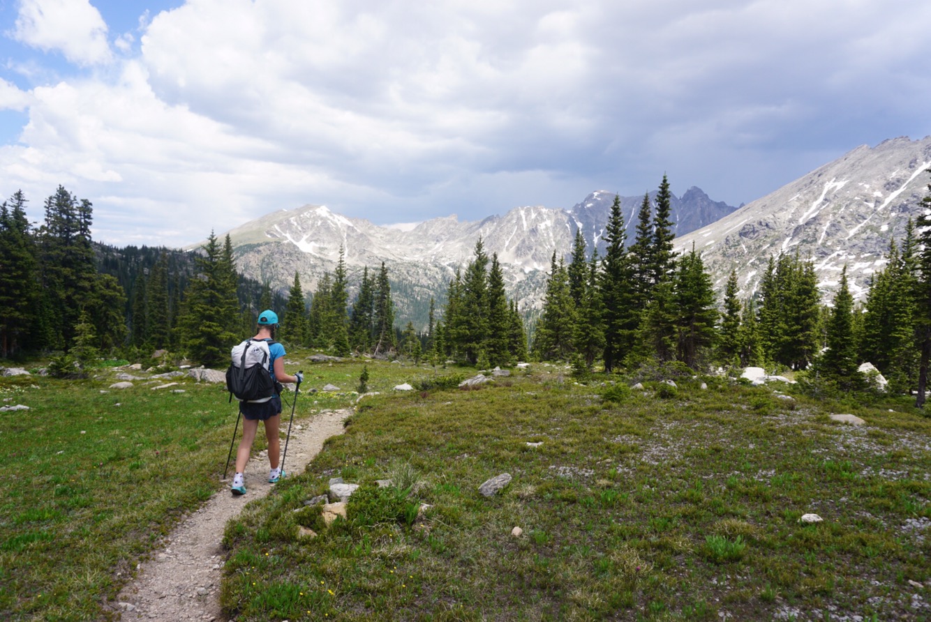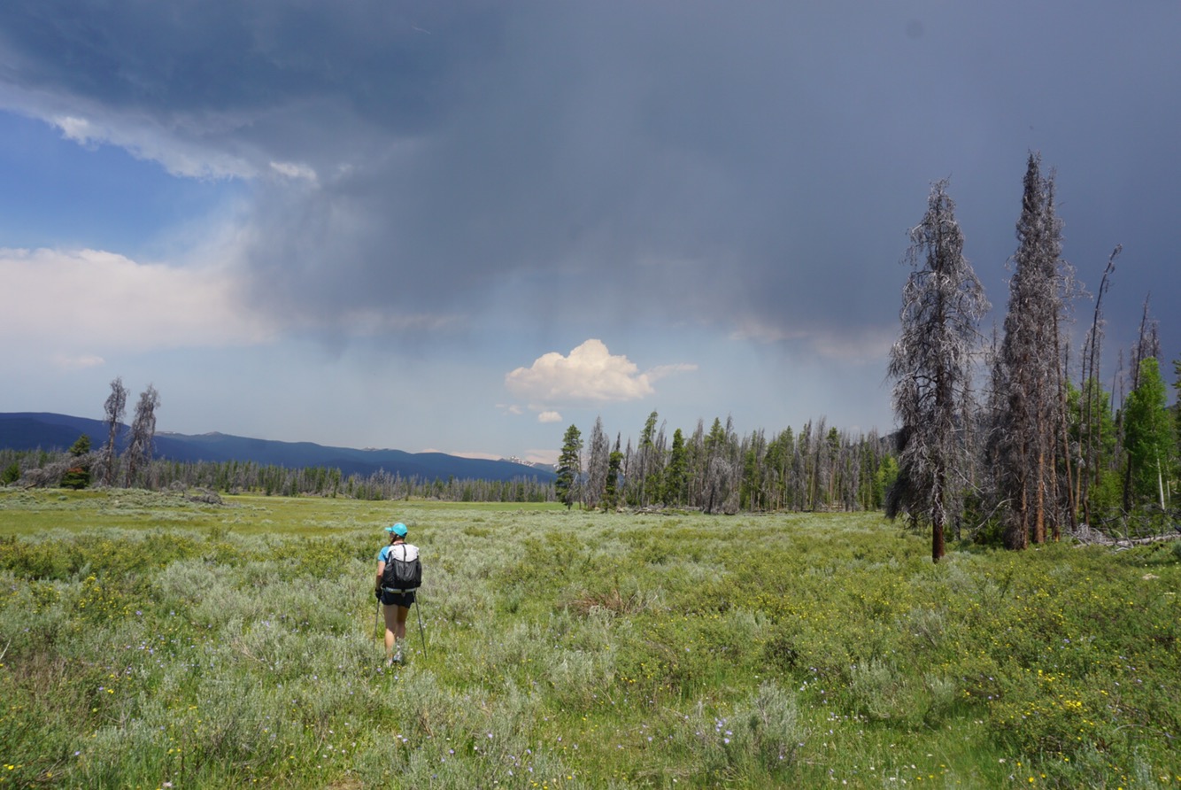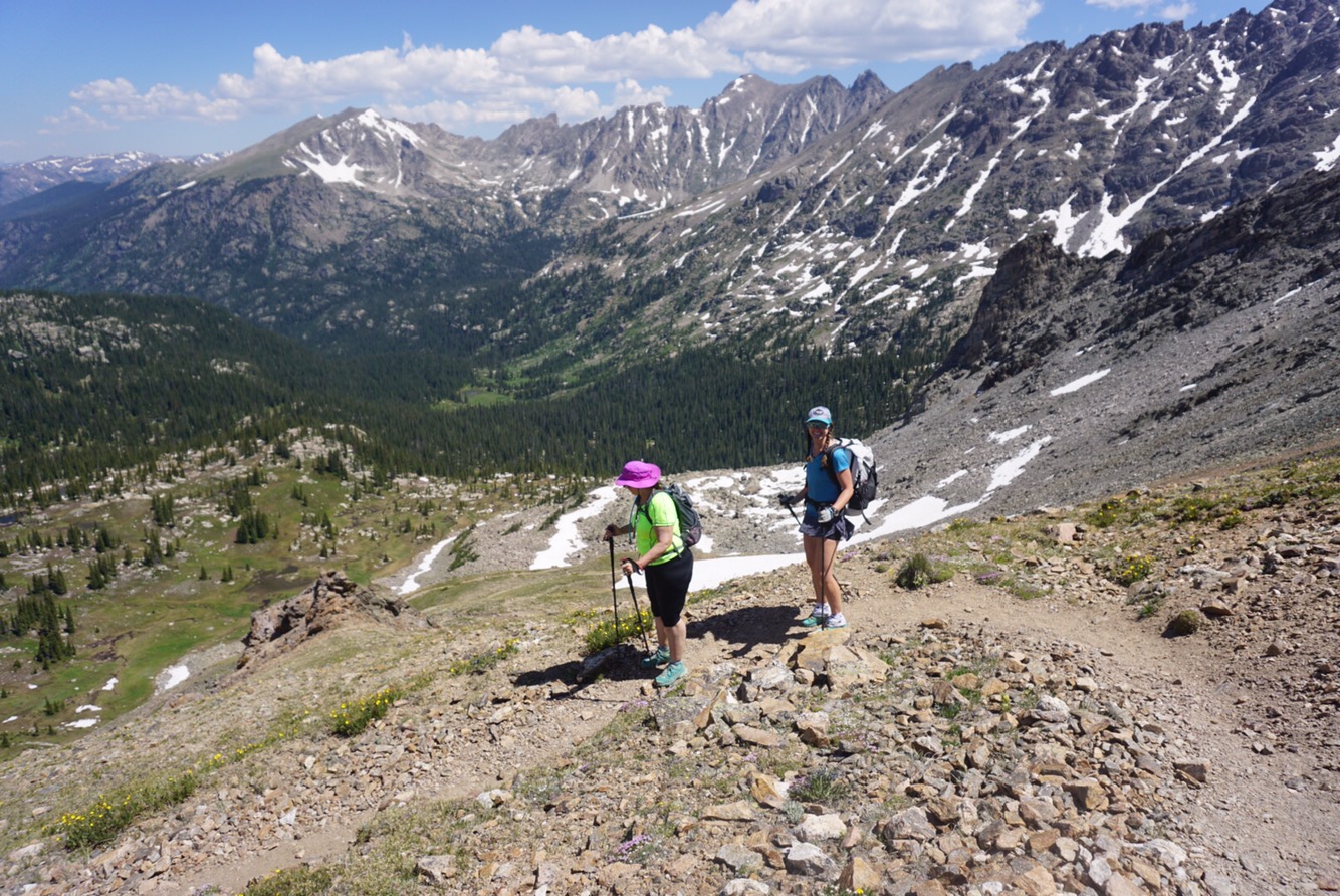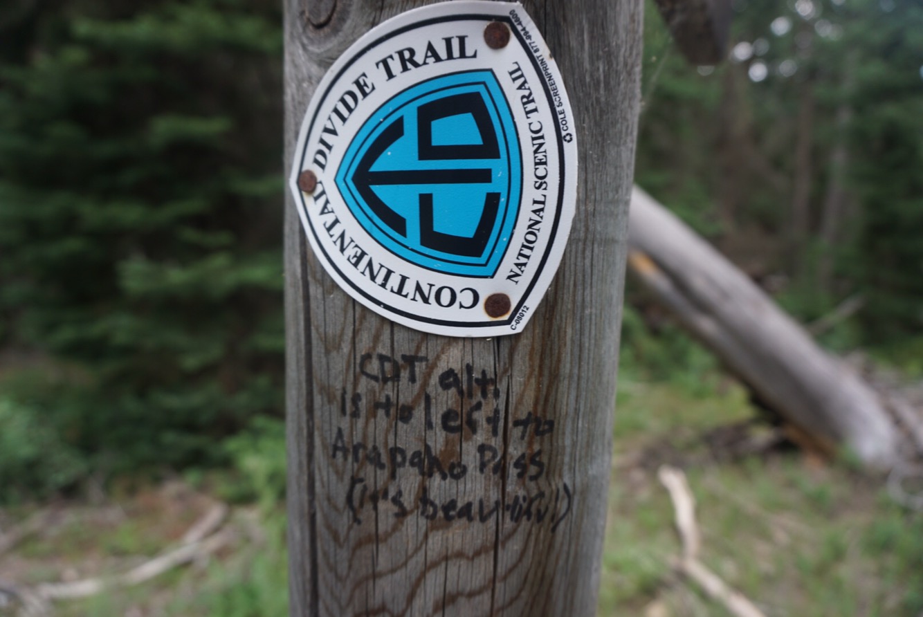 We said goodbye to Elaine’s mom and headed down the valley towards Monarch Lake. After a few miles we were in new terrain for the first time in more than 600 miles. We hiked the CDT back in 2015 from Wolf Creek to home and the repeat of the same route led to a bit of “here we go again.” It’s better to do new terrain on an adventure this long – the freshness and anticipation of what’s around the corner pulls you along. We followed Arapaho Creek down a glacial valley through pine forests and towering peaks. Technically speaking this route is an alternate of the CDT though I don’t know why because it’s higher and likely prettier than the beetle killed forests a few miles to the west.