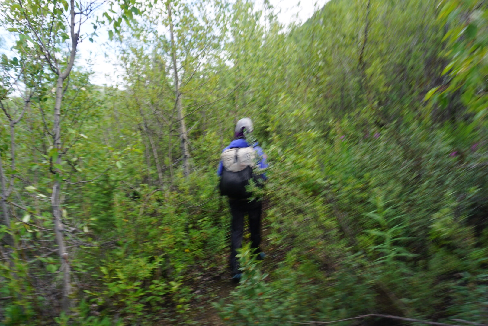 We were tired, it was getting dark and injury was a real possibility. It was turning into a dangerous situation, especially given the density of the forest and the fact that we’d been traveling for twelve hours already. We’d been hiking for two hours in the bushwhack and not found a six-foot wide gap in the forest to put up our shelter. The “road” below was only a half-mile away, but at this travel pace that equated to at least one hour.