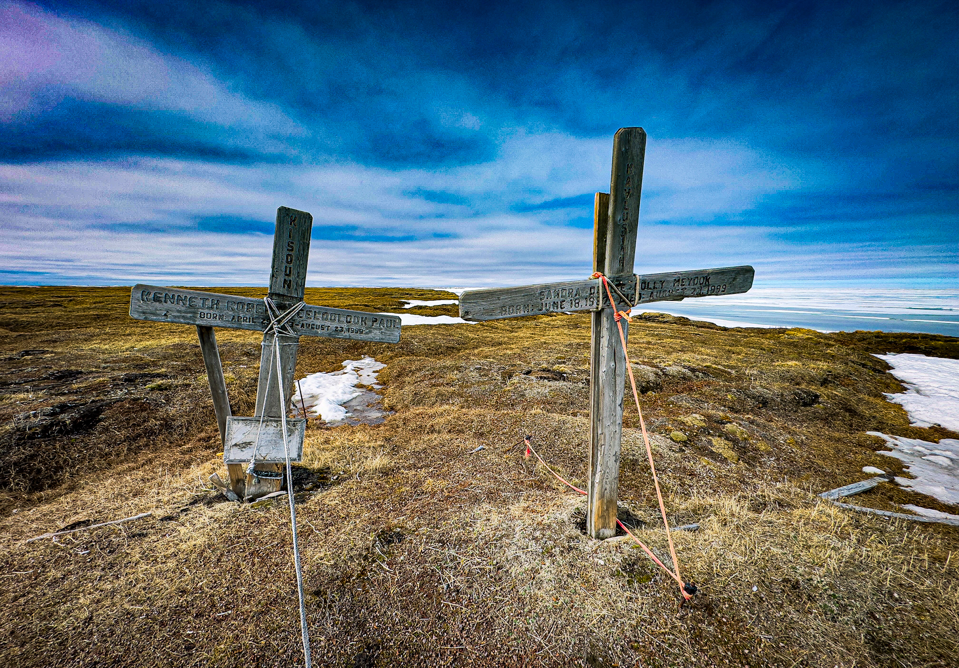 Just off from the runway, a few feet from the ocean, was a memorial for Inuits who died at this spot in a plane crash in 1999. An auspicious place to begin our journey, a true wilderness spot with a history. To the north, sea ice, the Beaufort Sea, the Arctic Ocean, terra incognita. This is the domain of the legends, Amundsen, Perry, Bartlett, Stefansson and others whose names are carved deep in the annuls of polar exploration. If we wanted to go to the North Pole, well, we could start here. The feeling I get when looking north over the Arctic Ocean, over the sea ice, is untamed. It feels invigorating, humbling, fascinating and terrifying all at once.