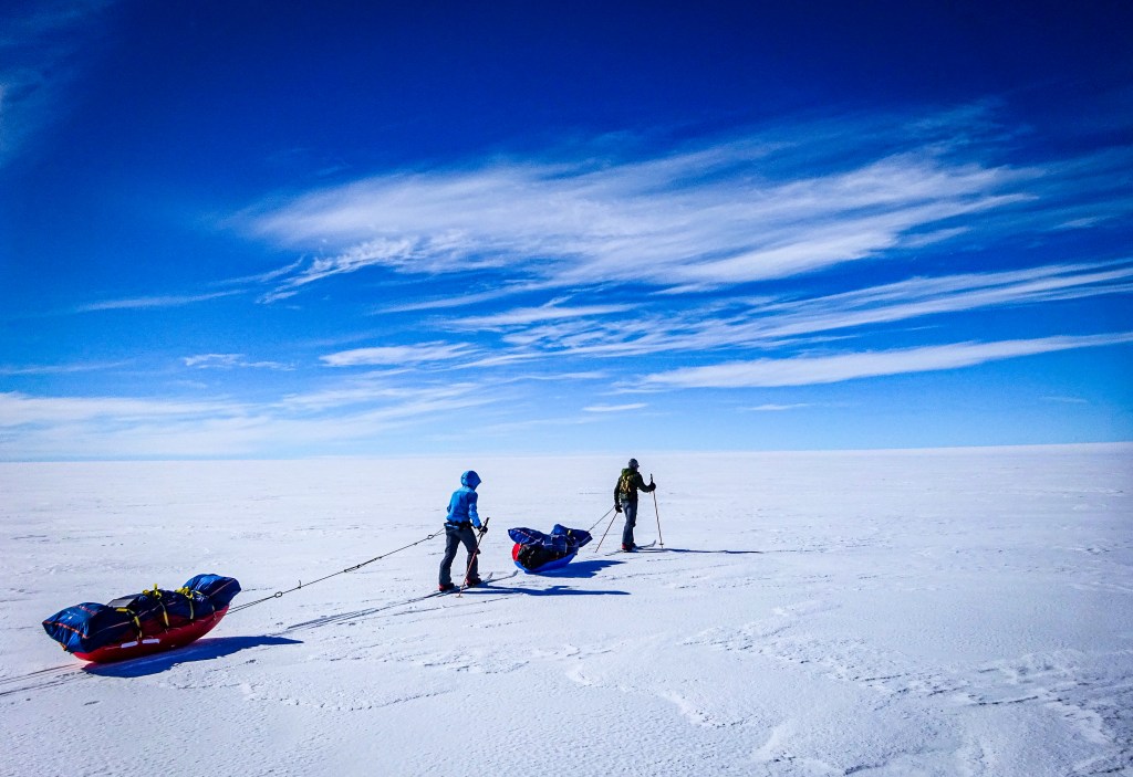 A steady north wind blew straight across the icecap, cold and persistent, hammering our right side as we skied. I layered up more than usual: heavier long underwear, thicker gloves, extra socks. Even so, the wind worked its way in. The terrain was straightforward, gently rising, but the effort felt heavier than the numbers suggested.