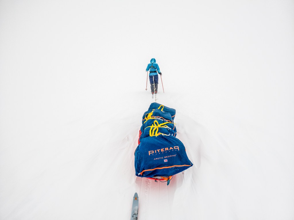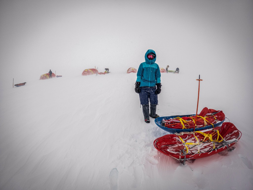 A strong east wind hammered the icecap the moment we stepped outside the tents. Snow streamed sideways and visibility collapsed. Early on, my sled returned to its old habit of tipping. On a calm day that’s manageable. In these conditions, it was a real problem. I did the only thing available: right it, adjust the load, and keep moving.
