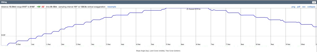 August 31 – 16.6 km, crossed summit at 8,159 feet