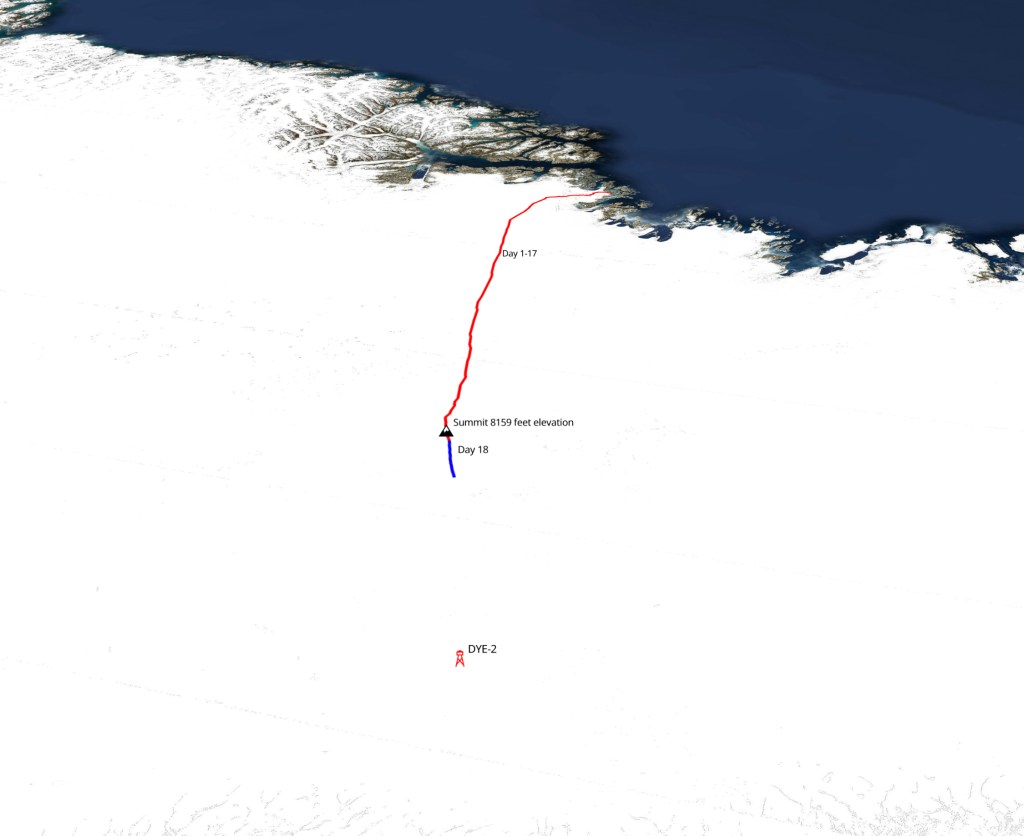 We are officially over the top now, though if I hadn’t known it from the maps and instruments I never would have guessed. The icecap offers no obvious cues. The descent is subtle, almost theoretical at this point. Still, something has shifted. Gravity has begun, however faintly, to take our side.