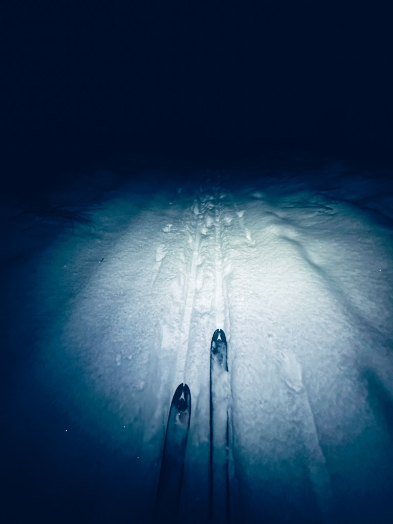 The loop was short, maybe a mile, but the snow was perfect. Cold, dry, quiet. It was easily the best snow we had skied all year. We moved slowly. No big goal. No plan. Just shaking out the cobwebs of travel with the familiar rhythm of poles, skis and breath in the dark northern woods.