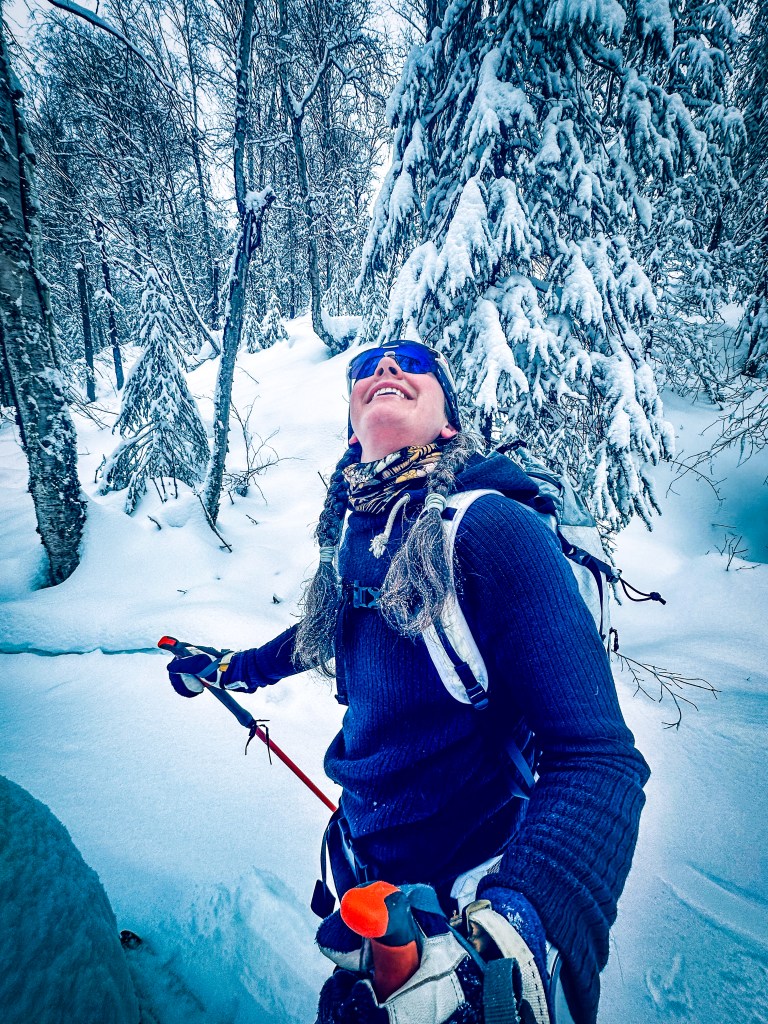 I’m proud of Elaine. She isn’t avoiding the grief or trying to tidy it up. In our culture there’s pressure to move on quickly, but that hasn’t always been the norm. Years ago in Anaktuvuk Pass, we met a man who told us plainly that he was in mourning. Not as an emotion, but as a state of being. Elaine’s tears didn’t feel disruptive. They felt natural. Part of the rhythm. Skiing through the woods has always done that. It opens things up.