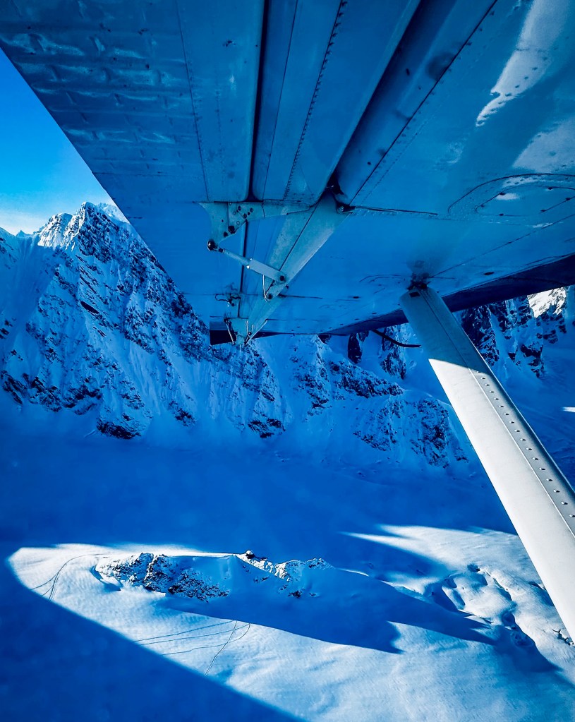 There was a sharp temperature drop this morning and perfectly clear blue skies. We remembered the conversation from the night before with Paul and Whitney, the couple we’d met skiing. Paul, it turned out, wasn’t just a pilot. He’s the Director of Operations at Talkeetna Air Taxi, the outfit that moves climbers and skiers into the Alaska Range, including Denali itself. As the conversation deepened, another connection surfaced: Paul had been central to the rescue of our friend Malcolm Daly off Thunder Mountain back in 2000. It’s a legendary rescue, and one we’d heard about for years.