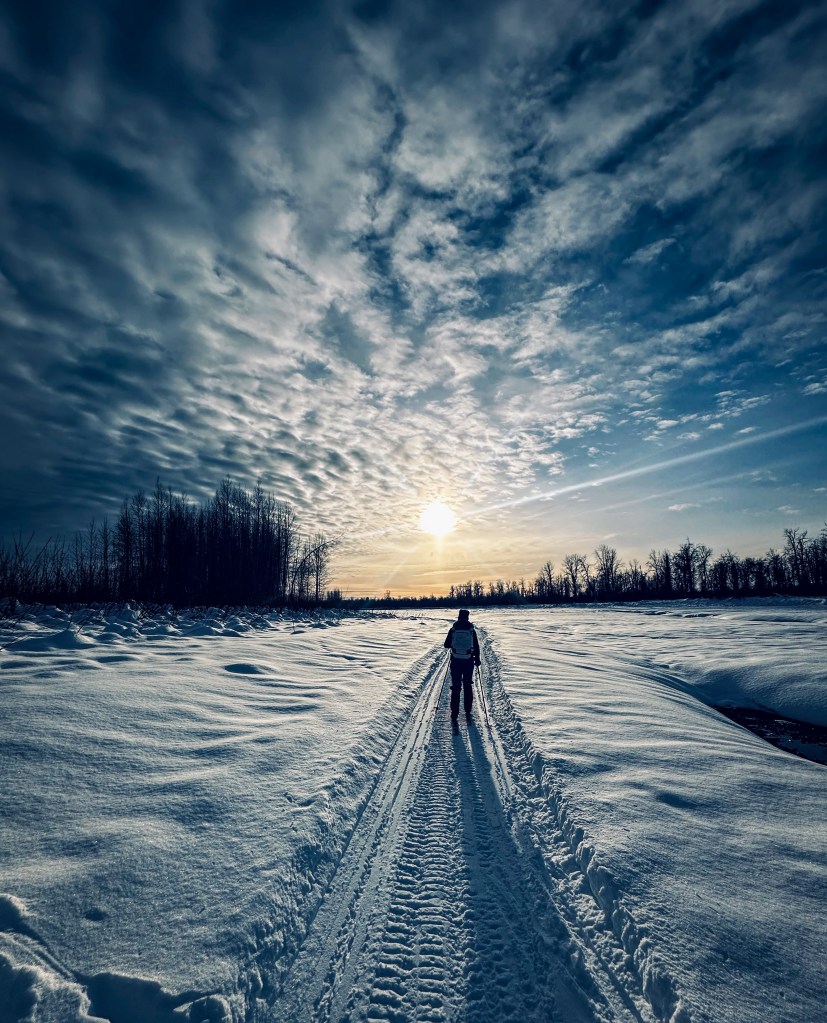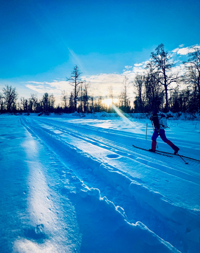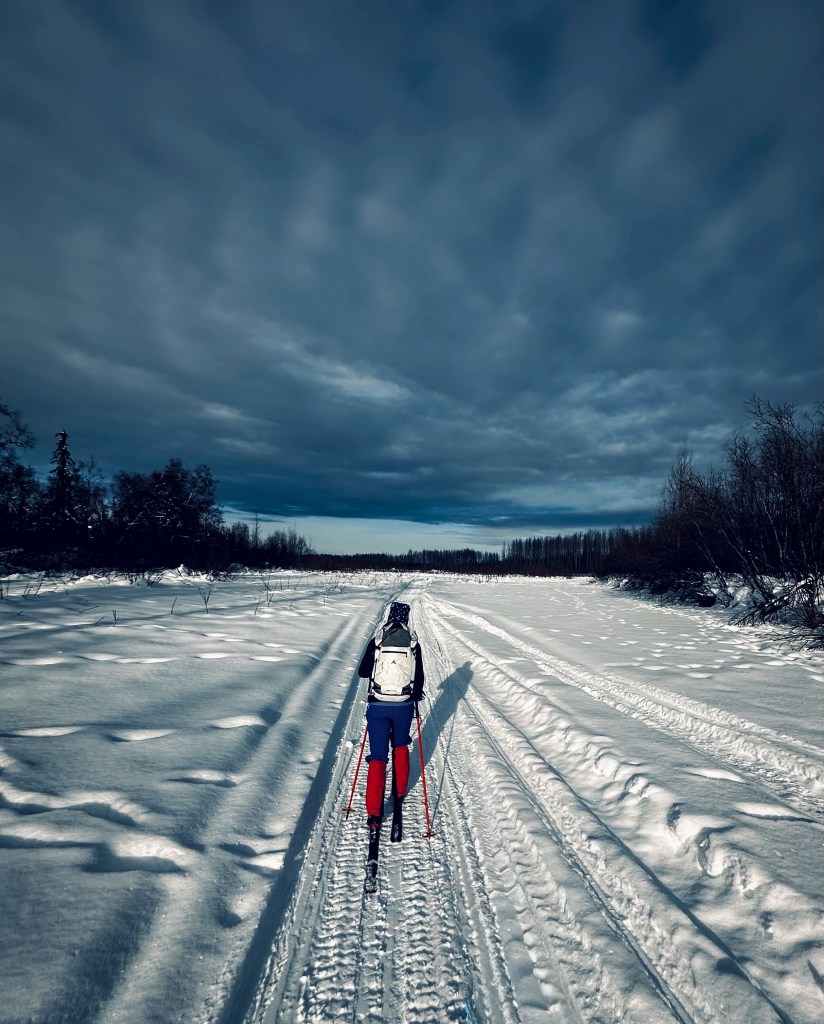 While the forest trails were delightful, there was something about skiing up the Susitna River that captured what we love most about Alaska: a vast riverbed winding toward an epic mountain range.