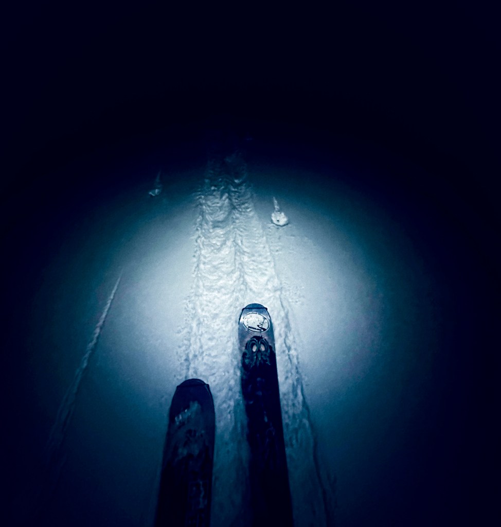 By the time we got to our home in Colorado it was nearly eleven at night. The trip felt finished, but something about the symmetry of it all pulled me back outside. I clicked into my skis and headed down toward the river for a short glide under the night sky.
